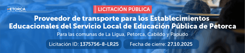 Esta licitación (ID: 1375756-8-LR25) busca dar continuidad a las rutas actuales en las comunas de Petorca, Cabildo, La Ligua y Papudo, además de contar con 9 líneas nuevas que complementarán el transporte escolar para más de 1.100 estudiantes de la provincia. La licitación cuenta con 30 líneas en total: 14 en Petorca, 7 en Cabildo, […]